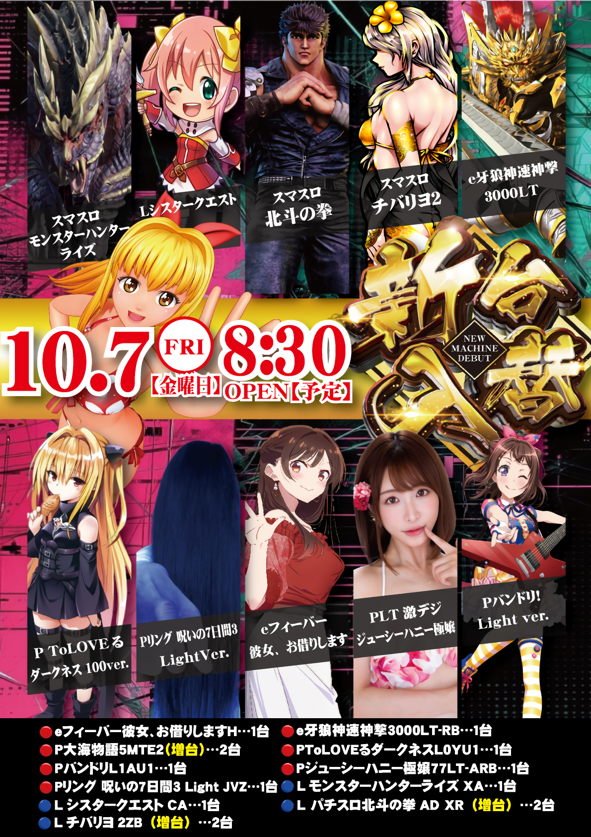 【新台入替のお知らせ】10月24日(金)新台入替あさ8:30オープン【予定】