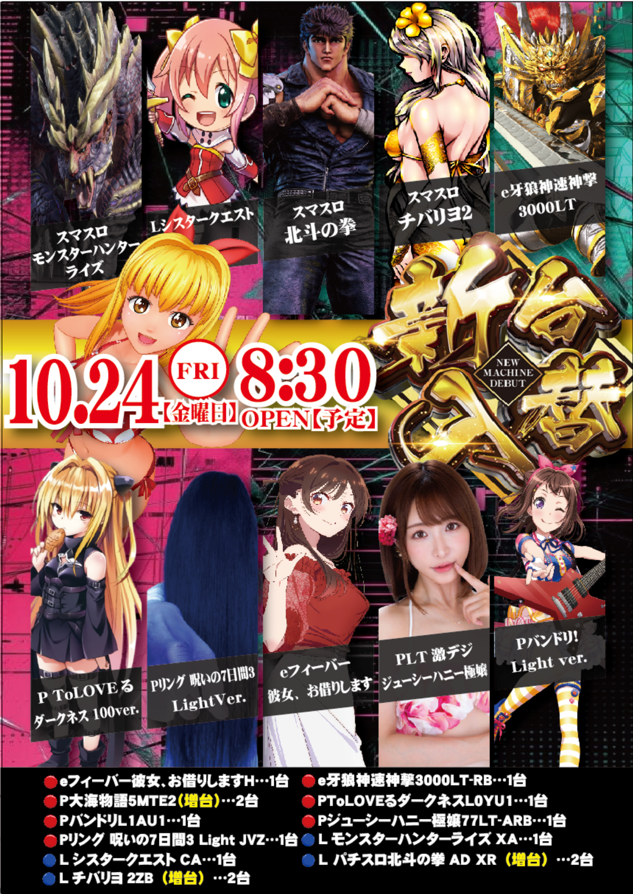 【本日】⑩月㉔日(金)新台入替あさ8:30オープン【予定】